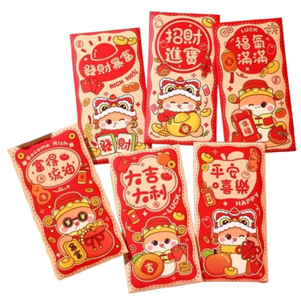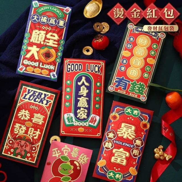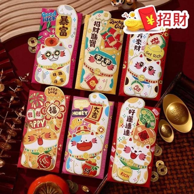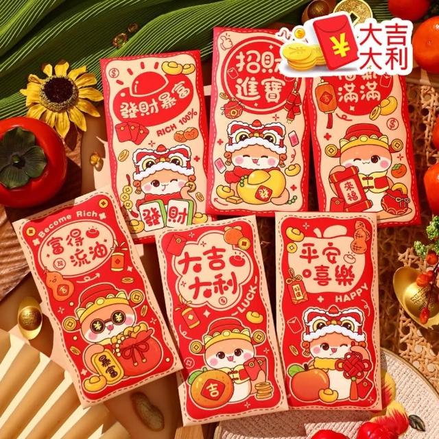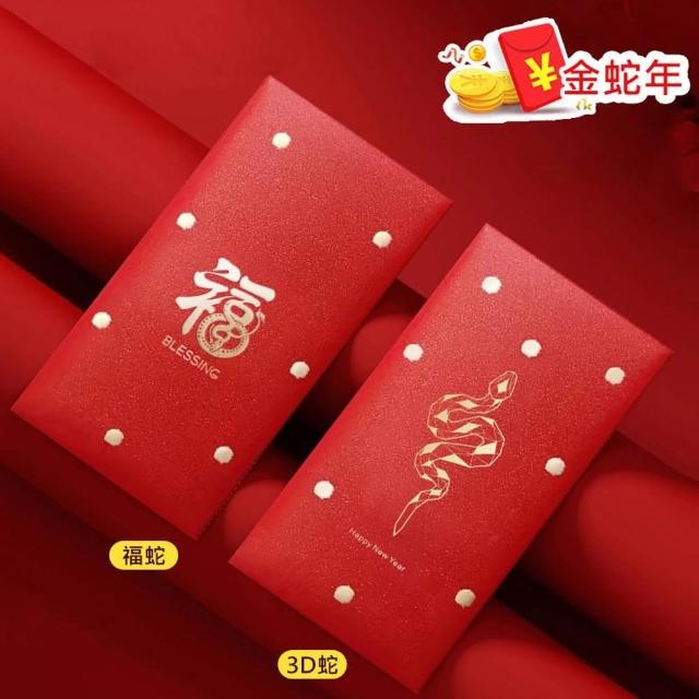 D+ 滴家2025年蛇年 春節紅包袋 創意燙金紅包袋 卡通紅包袋 金蛇年大吉 卡通立體造型 燙金紅包袋 禮金袋(1組6入)