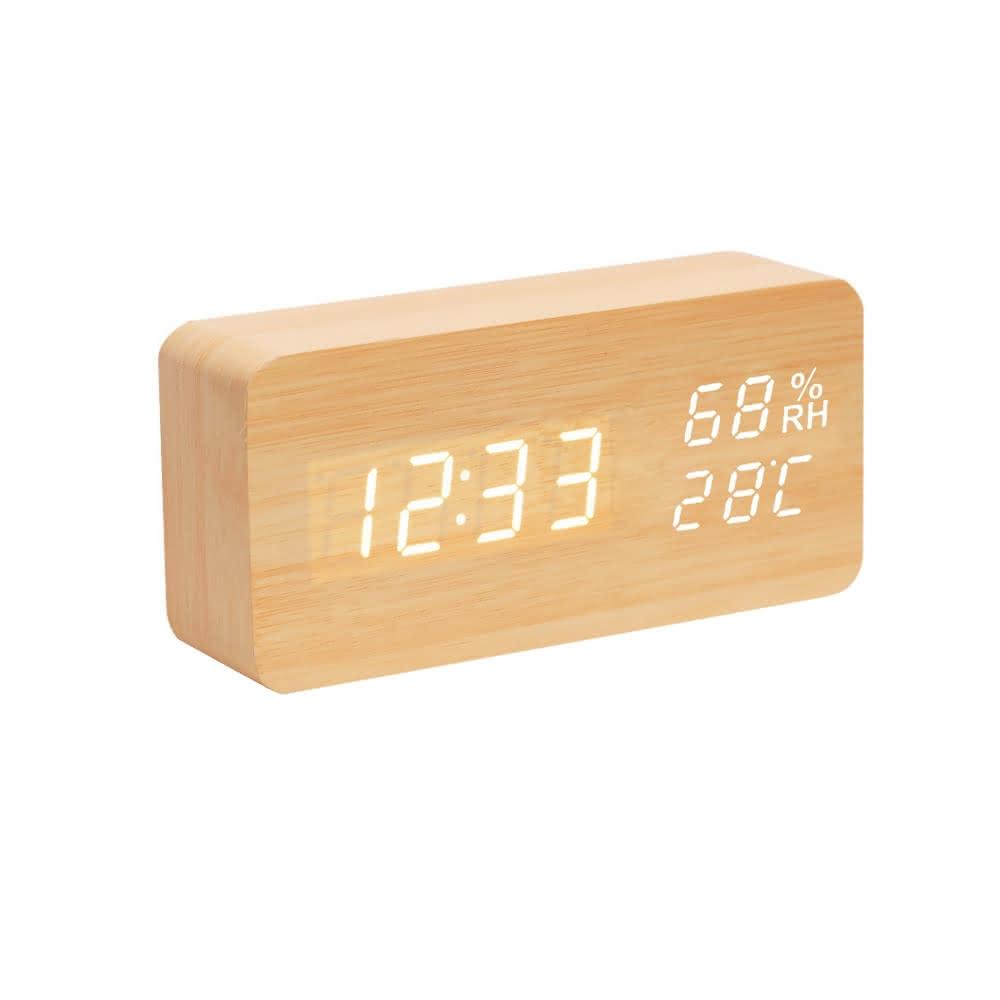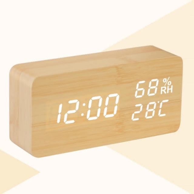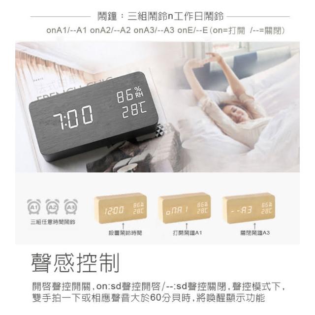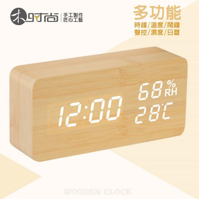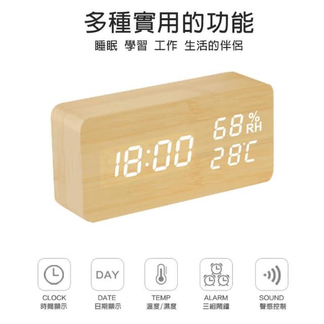 多功能木紋時鐘 聲控鬧鐘 顯示溫度 濕度 萬年曆 LED (USB/電池雙供電) 時鐘 鬧鐘 木質時鐘 木紋鐘