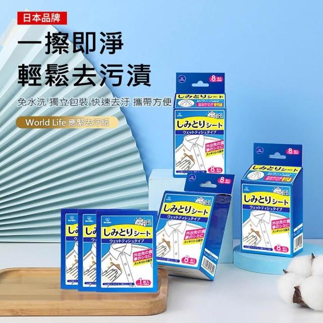 D+ 滴家日本World Life 應急去汙紙 衣物去污濕巾 衣物去污漬 一次性清潔巾 衣服去汙濕巾 衣物去汙紙 8片/盒