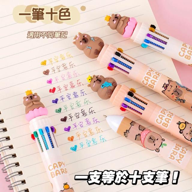 D+ 滴家卡皮巴拉10色按壓筆 多色中性筆 原子筆 卡皮巴拉文具 CAPYBARA 水豚君 多色圓珠筆 多色合一按動中性筆