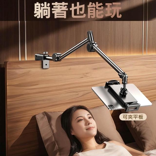 D+ 滴家新款碳鋼三段式懸臂 平板支架 床頭懶人懸臂支架 懸臂直播支架 萬向調節三段式機械手臂 桌面旋轉360°手機俯拍