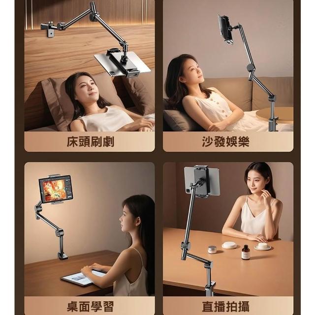 D+ 滴家新款碳鋼三段式懸臂 平板支架 床頭懶人懸臂支架 懸臂直播支架 萬向調節三段式機械手臂 桌面旋轉360°手機俯拍