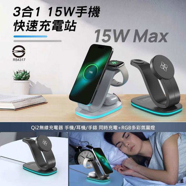 D+ 滴家AHEAD Qi2三合一無線充 無線充電器 15W手機無線快充 充電板 無線充電器 耳機 手錶 適用蘋果/安卓手機