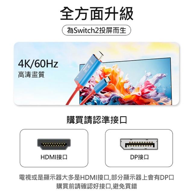 D+ 滴家任天堂 Switch2高清投影線 Type-C轉HDMI轉接線 高清投影線 Type-C轉HDMI轉接線 視頻線