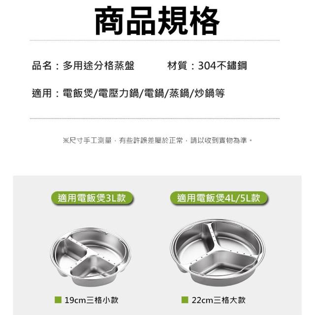 D+ 滴家一鍋三蒸 電飯鍋蒸盤 食品級304不銹鋼 電飯煲內蒸籠 分格蒸菜 隔水蒸架 內鍋分隔 電飯蒸盒 分格蒸盤