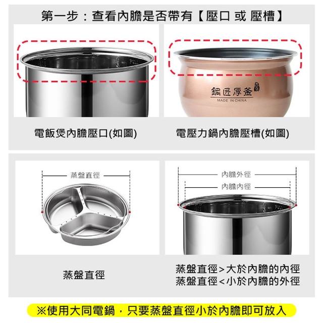 D+ 滴家一鍋三蒸 電飯鍋蒸盤 食品級304不銹鋼 電飯煲內蒸籠 分格蒸菜 隔水蒸架 內鍋分隔 電飯蒸盒 分格蒸盤