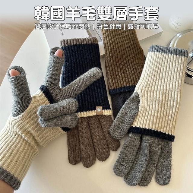 D+ 滴家韓國羊毛雙層手套 可觸控手套 五指手套 方便玩手機 羊毛冬季保暖 針織手套 保暖手套 觸控手套