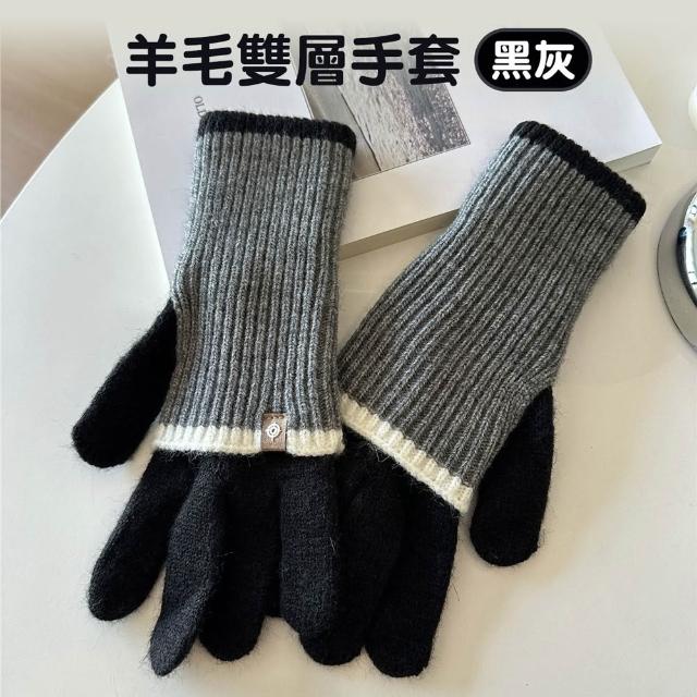 D+ 滴家韓國羊毛雙層手套 可觸控手套 五指手套 方便玩手機 羊毛冬季保暖 針織手套 保暖手套 觸控手套