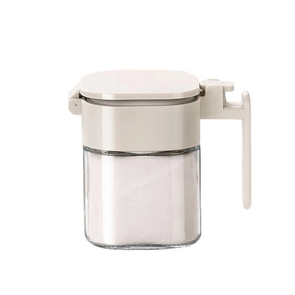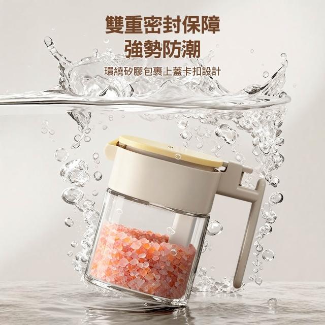 D+ 滴家味滿勺倉分離調味罐 玻璃密封鹽罐 廚房防潮收納罐 一鍵開合 內置勺倉附湯匙 400ml 調料瓶 佐料罐