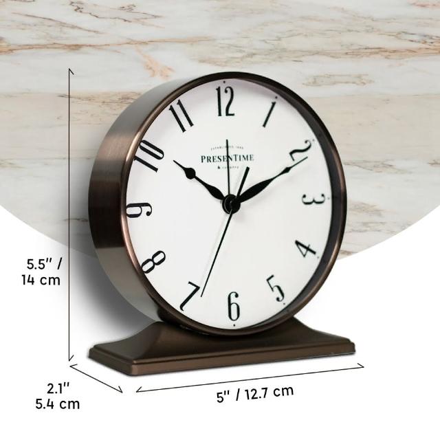 PresenTime & Co.美國 路易斯金屬 桌鐘 鬧鐘 5.5吋 - 茶金銅