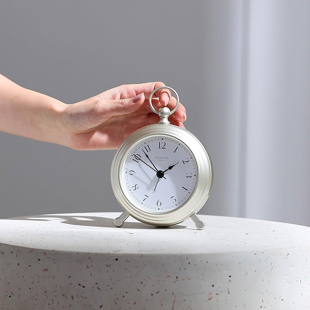 Fountain Designs美國 傑生懷錶 桌 掛鐘 5.4吋 - 晨曦銀 / 仿古銅