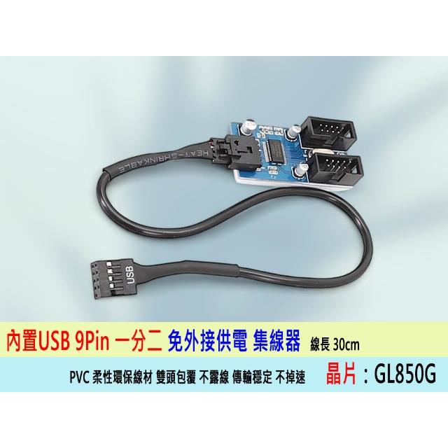 USB內接擴充器 主機板內置 USB9Pin 一分二集線器 電路板設計 USB Hub 1分2 水冷必備