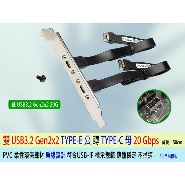 主機板 Key-A 雙口 Type-E 轉 Type-C 母 轉接線 USB3.2 Gen2x2 最高20Gbps 線長50cm 擴充連接線 電腦用 PCI-E擋板
