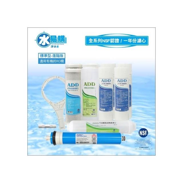 標準型RO純水機1年份濾心-10支裝 (進階版)含RO膜-通過NSF認證-適用於有桶型~水易購淨水