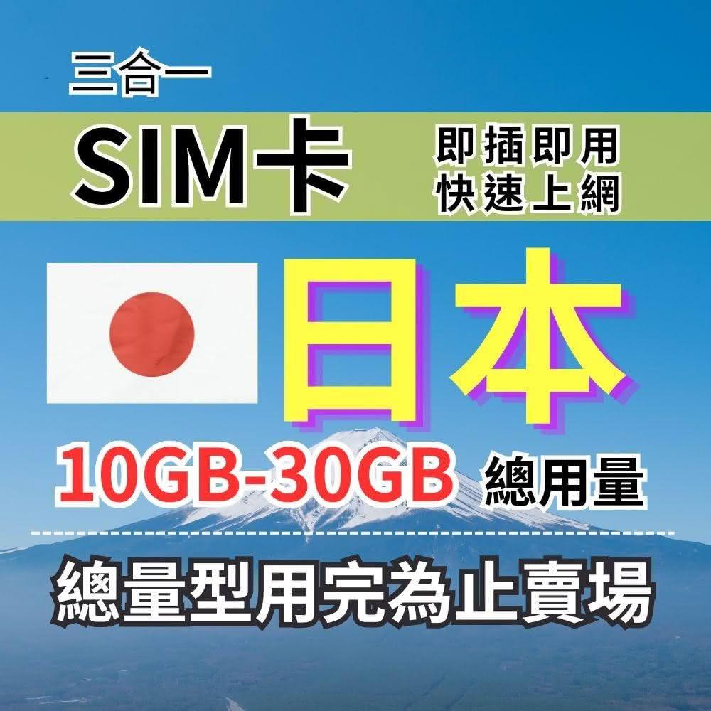 實體卡 總量型日本上網卡 10GB-30GB 日本旅遊上網卡 日本上網SIM卡