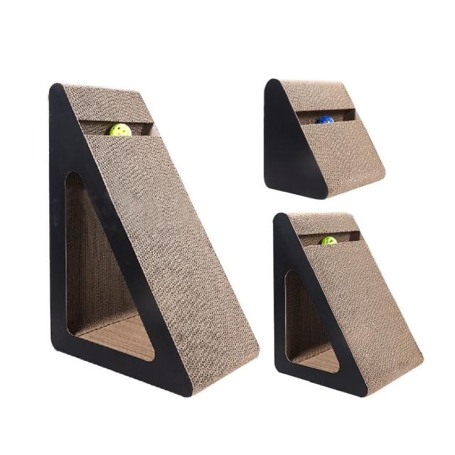 三角貓抓板 寵物睡窩 造型貓窩 貓抓屋 貓睡窩 貓抓板 貓窩 鈴鐺球 直立式