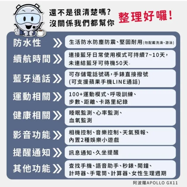 APOLLO阿波羅 GX11 戶外運動智慧手錶 【高續航7-10天】 通話手錶 健康手錶 藍芽手錶 蘋果/安卓可用