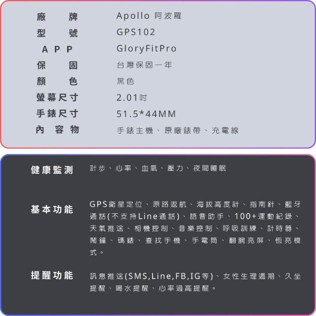 APOLLO阿波羅 GPS102 【GPS衛星定位】 【高續航7-10天】 通話手錶 健康手錶 藍芽手錶 蘋果/安卓可用