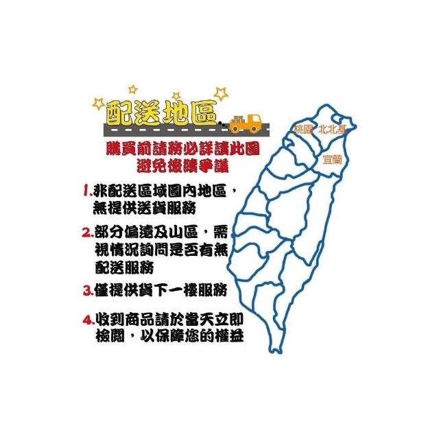 - 針對大型商品(包括:大型家電、家具床墊、健身按摩器材、車類...等),商店將於完成收款確認後,一天內〈不含例假日〉將會有專人與您確認相關配送細節等的聯繫。偏遠地區、樓層費及其它加價費用,皆由商店於約定配送時一併告知,商店將保留出貨與否的權利。