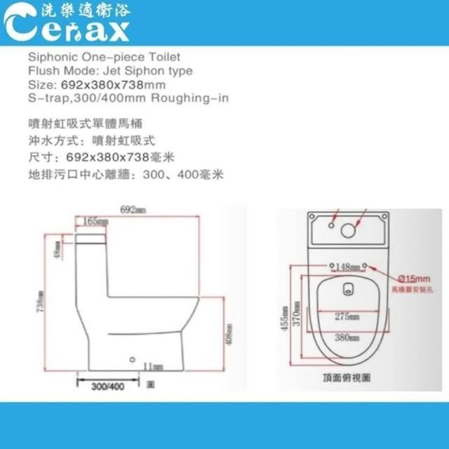 CERAX 洗樂適普級省水單體馬桶 K-94 兩段式噴射虹吸式 管距30cm/40cm(適合小空間浴室)