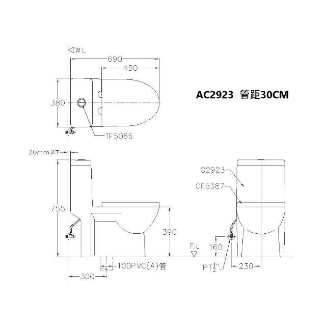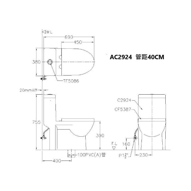 Alex 電光AC2923、AC2924 二段式金級省水 噴射虹吸式 單體馬桶 附緩降馬桶蓋