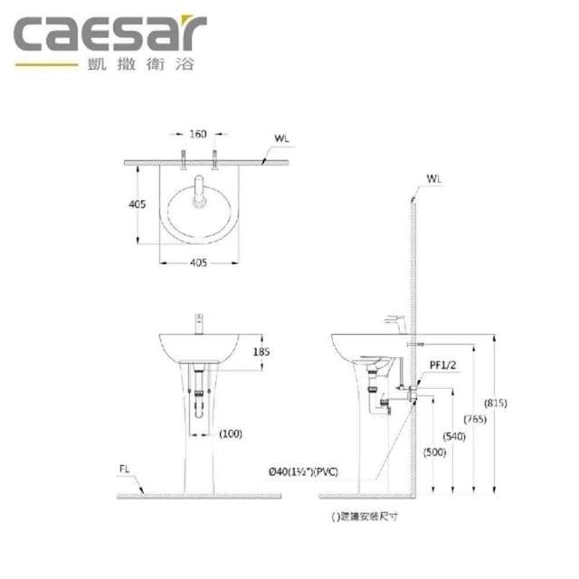 CAESAR 凱撒衛浴40cm瓷盆 L2140S 單孔面盆/L2140D 雙孔面盆 不含瓷腳(面盆、浴室、衛浴)