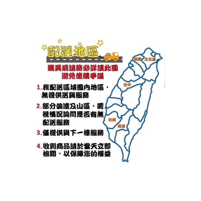 - 針對大型商品(包括:大型家電、家具床墊、健身按摩器材、車類...等),商店將於完成收款確認後,一天內〈不含例假日〉將會有專人與您確認相關配送細節等的聯繫。偏遠地區、樓層費及其它加價費用,皆由商店於約定配送時一併告知,商店將保留出貨與否的權利。