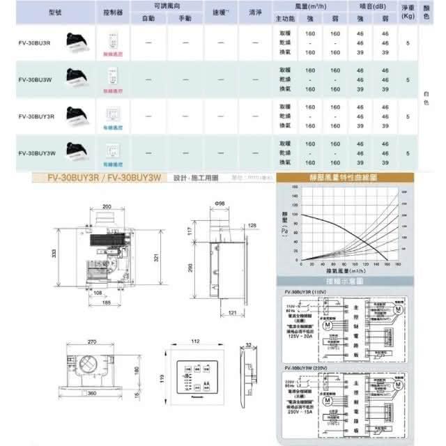 Panasonic 國際牌有線遙控 浴室乾燥暖風機 陶瓷加熱(FV-30BUY3R/FV-30BUY3W)