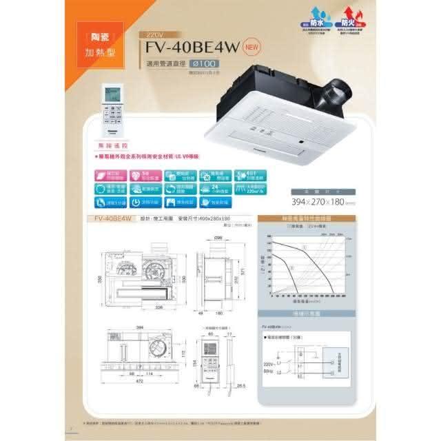 Panasonic 國際牌220V 無線遙控 浴室乾燥暖風機 陶瓷加熱(FV-40BE4W)