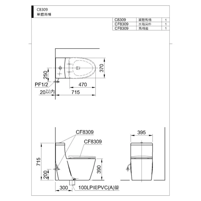 HCG 和成Enno伊諾系列 單體馬桶 上壓兩段式沖水 金級省水 (C8309MUT)