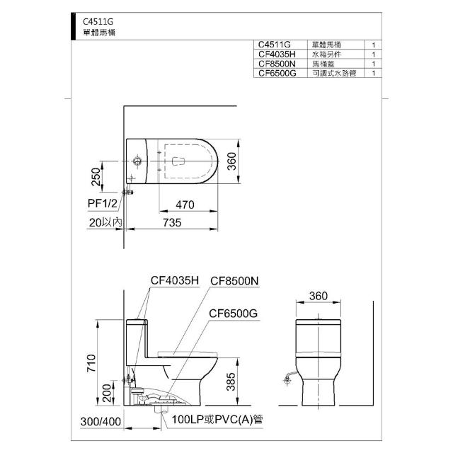 HCG 和成Eton伊頓系列 單體馬桶 上壓兩段式沖水 金級省水 可調式水管路 (C4511GMUT)