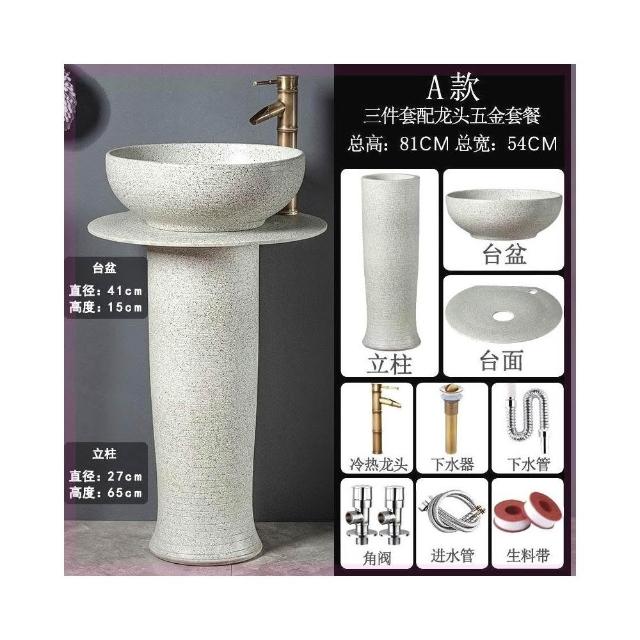 戶外洗手盆陽臺立柱盆復古陶瓷一體式洗臉盆落地式室外庭院洗手池