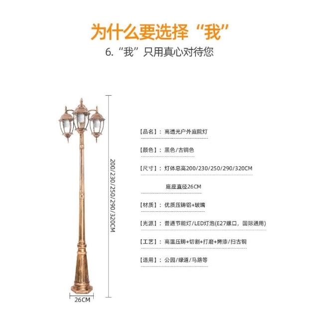 歐式路燈庭院草坪燈防水燈戶外燈景觀公園別墅社區雙頭3米高杆燈