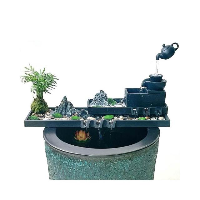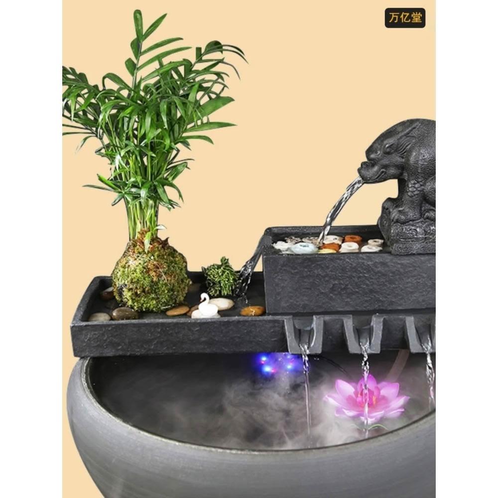 烏金石流水擺件水族迴圈增氧篩檢程式魚缸瓦缸石槽配件中式生財擺件