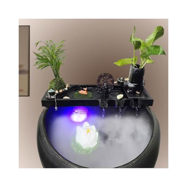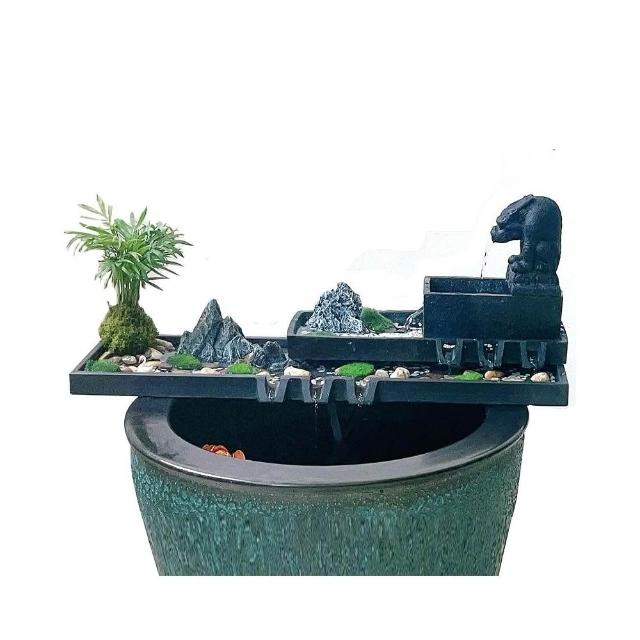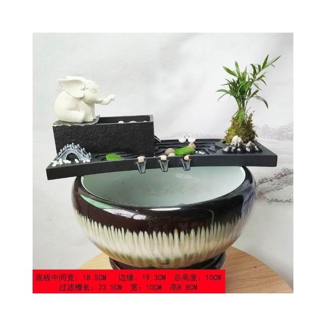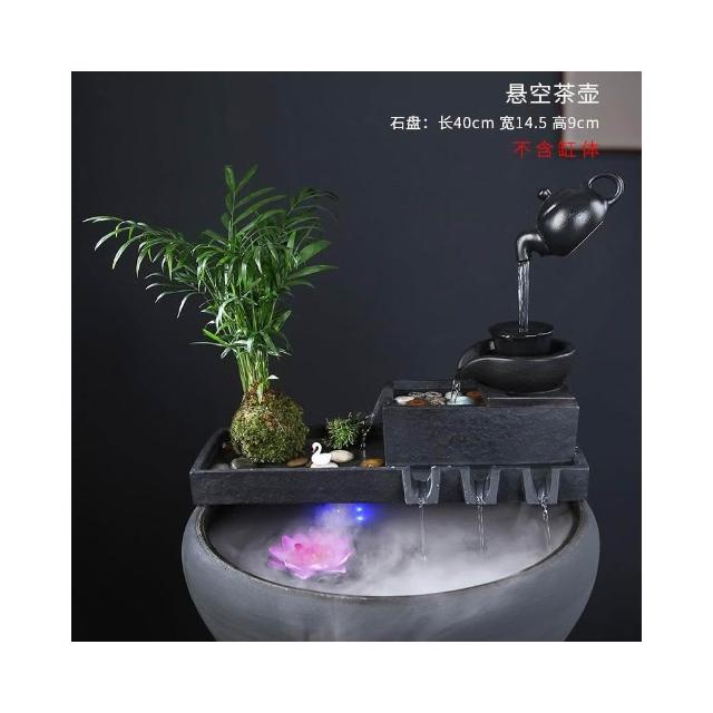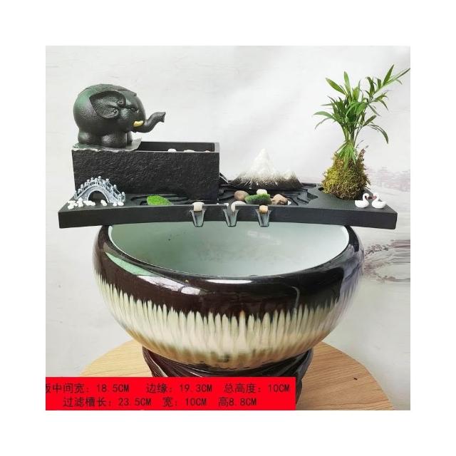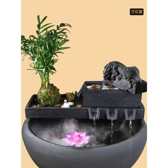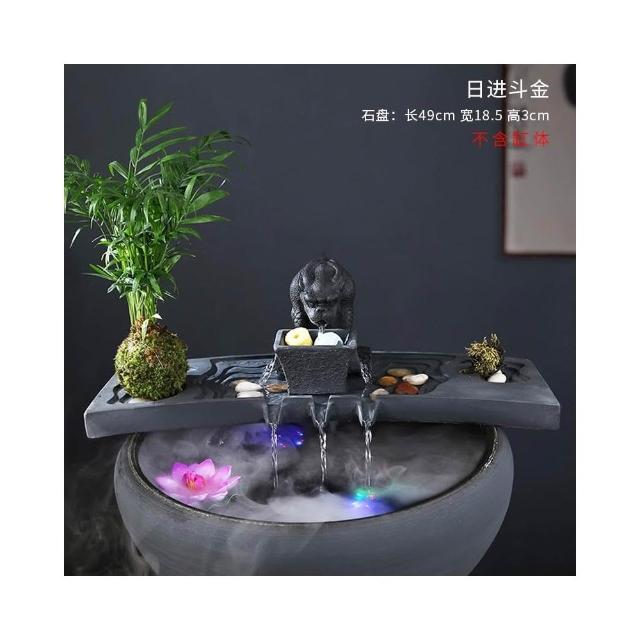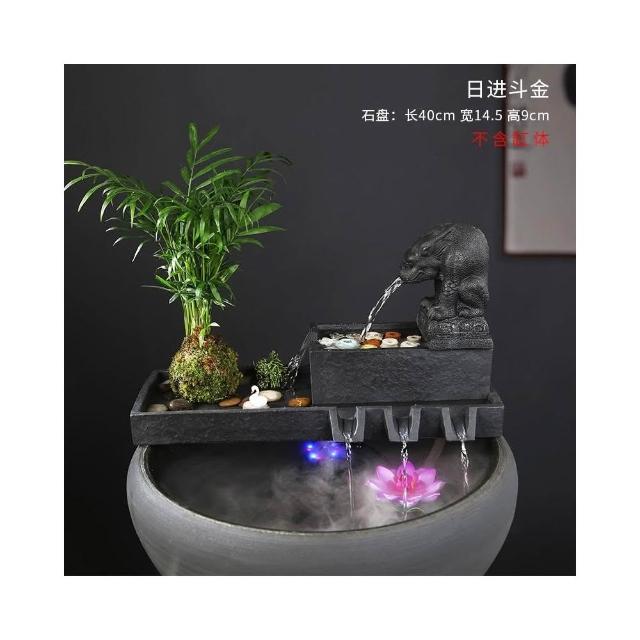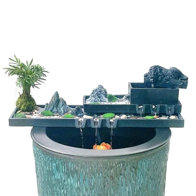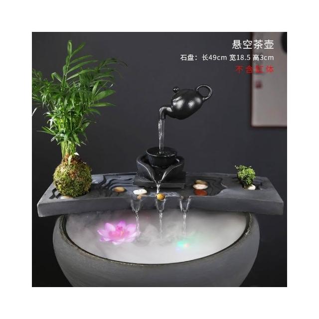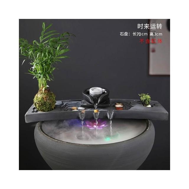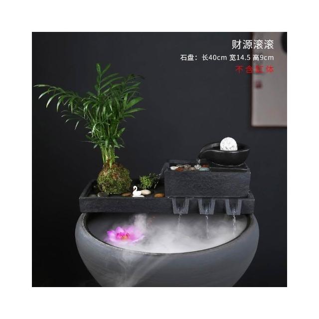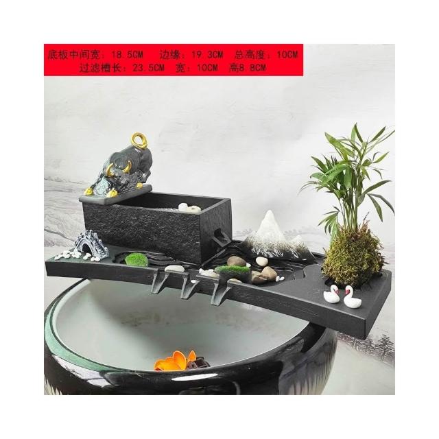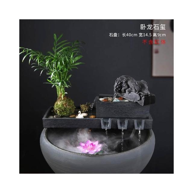 烏金石流水擺件水族迴圈增氧篩檢程式魚缸瓦缸石槽配件中式生財擺件