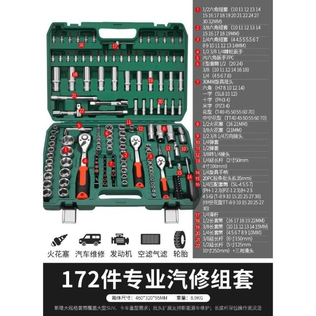 綠林汽修套筒扳手套裝組合維修套頭棘輪專用工具大全多功能工具箱