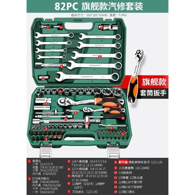 綠林汽修套筒扳手套裝組合維修套頭棘輪專用工具大全多功能工具箱