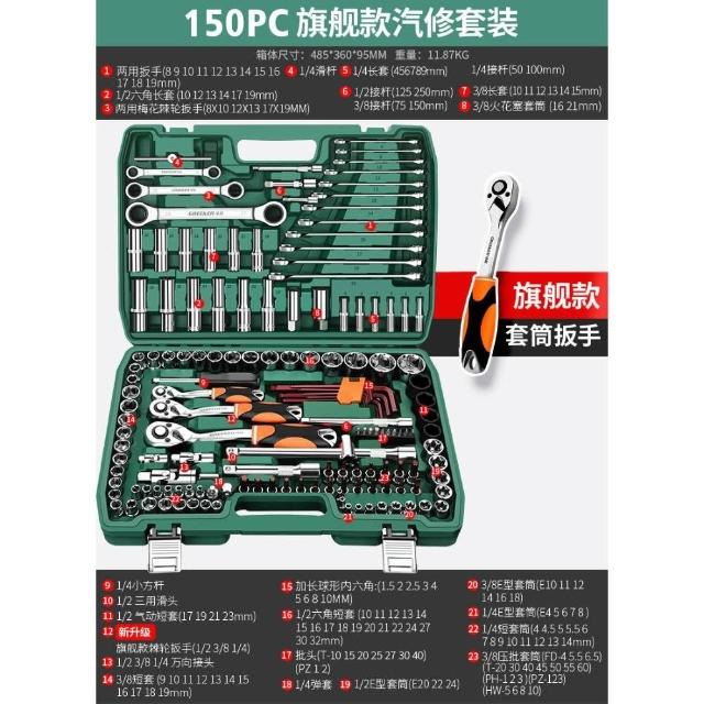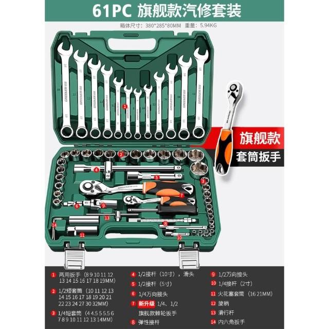 綠林汽修套筒扳手套裝組合維修套頭棘輪專用工具大全多功能工具箱