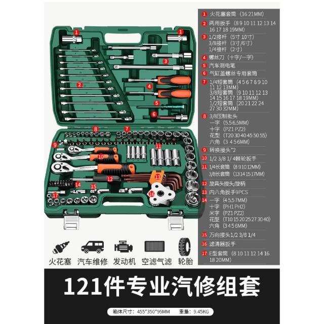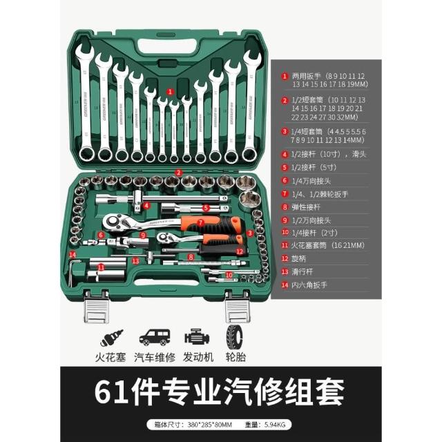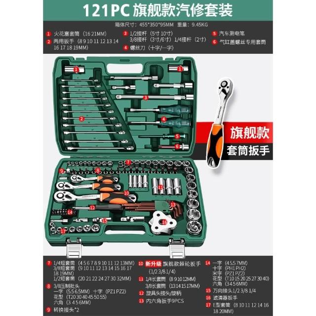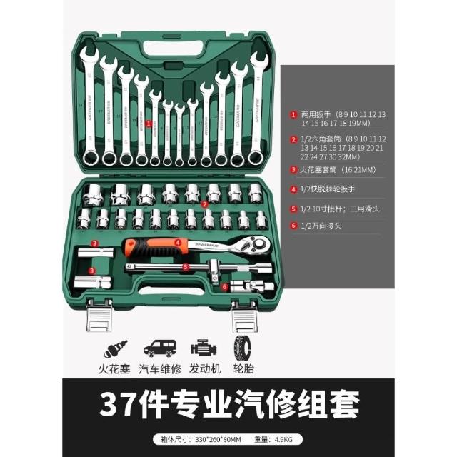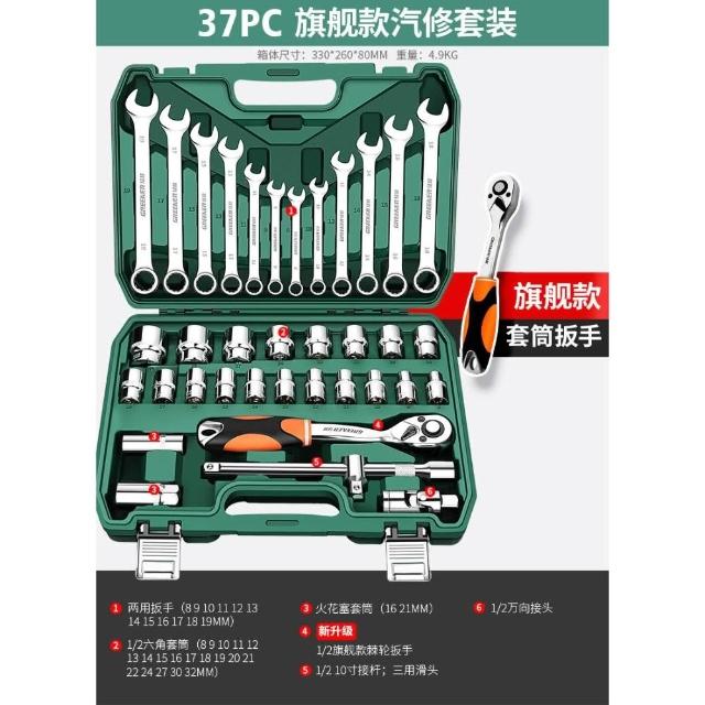 綠林汽修套筒扳手套裝組合維修套頭棘輪專用工具大全多功能工具箱