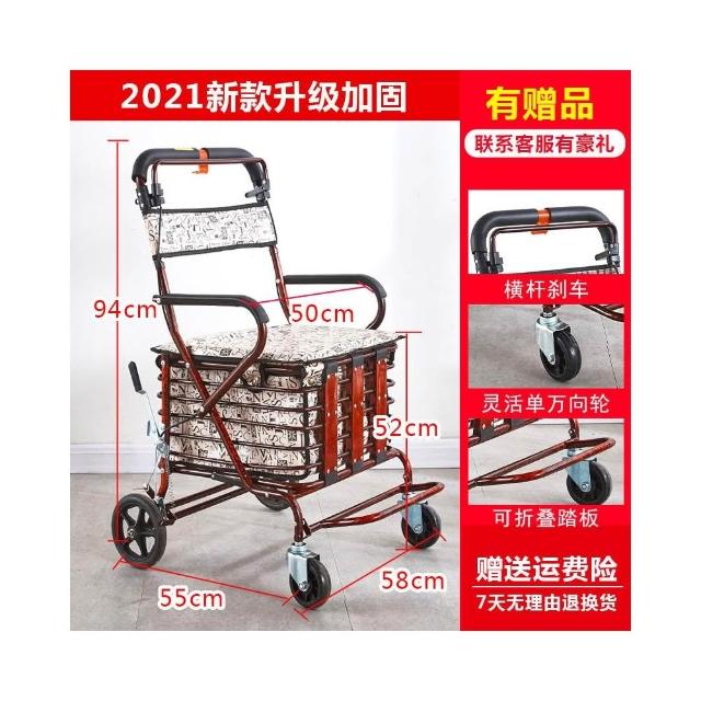 老人手推車可坐可折疊買菜車家用代步車四輪便攜購物車老年小拉車