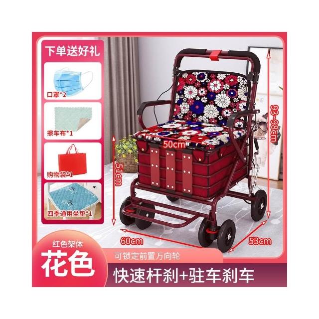 老人手推車可坐可折疊買菜車家用代步車四輪便攜購物車老年小拉車
