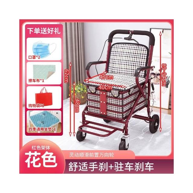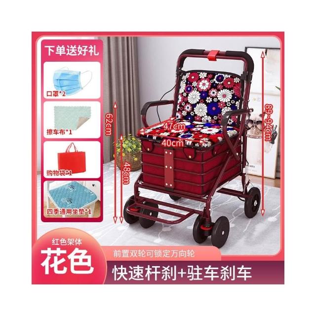 老人手推車可坐可折疊買菜車家用代步車四輪便攜購物車老年小拉車