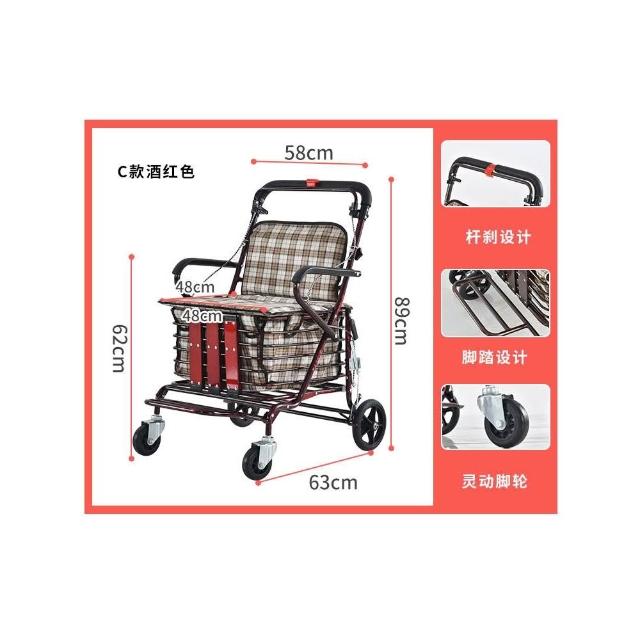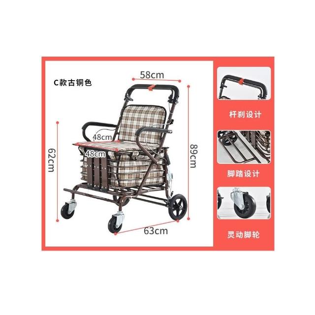 老年代步車折疊購物車座椅可坐四輪買菜助步可推小拉車老人手推車
