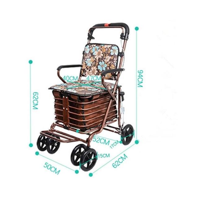 老年代步車折疊購物車座椅可坐四輪買菜助步可推小拉車老人手推車