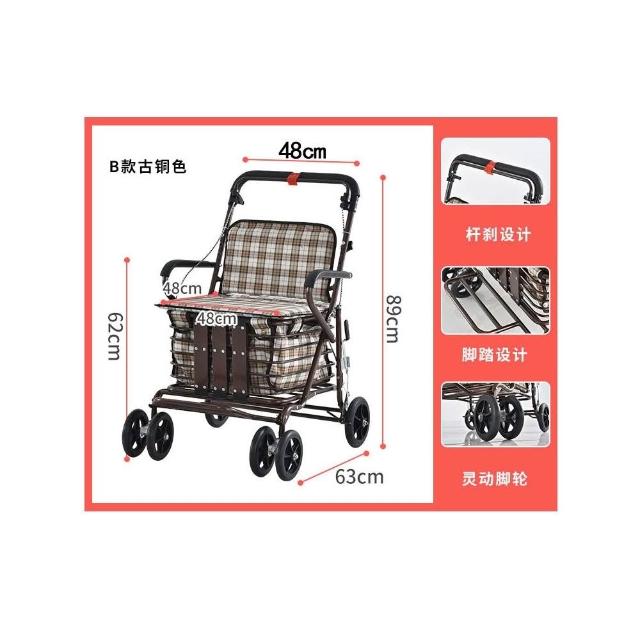 老年代步車折疊購物車座椅可坐四輪買菜助步可推小拉車老人手推車