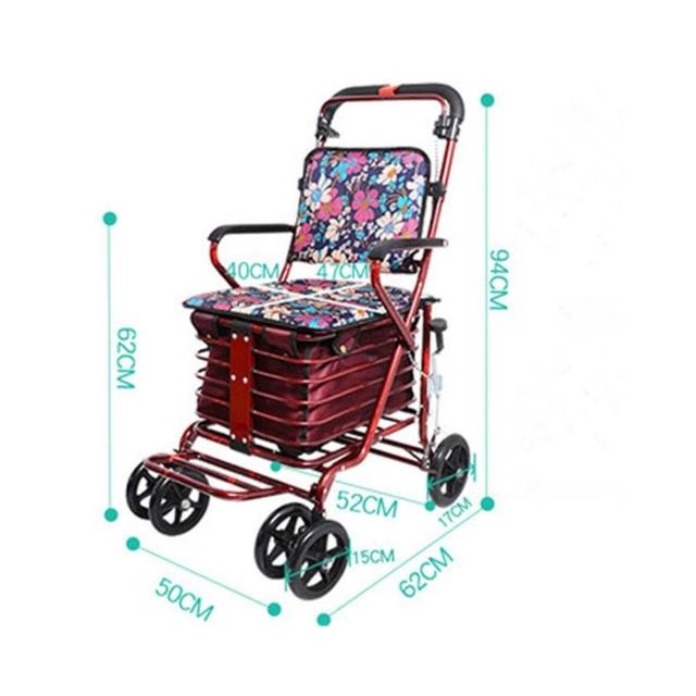老年代步車折疊購物車座椅可坐四輪買菜助步可推小拉車老人手推車