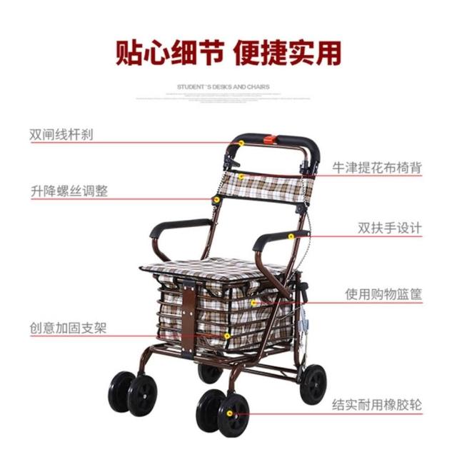 老年代步車折疊購物車座椅可坐四輪買菜助步可推小拉車老人手推車