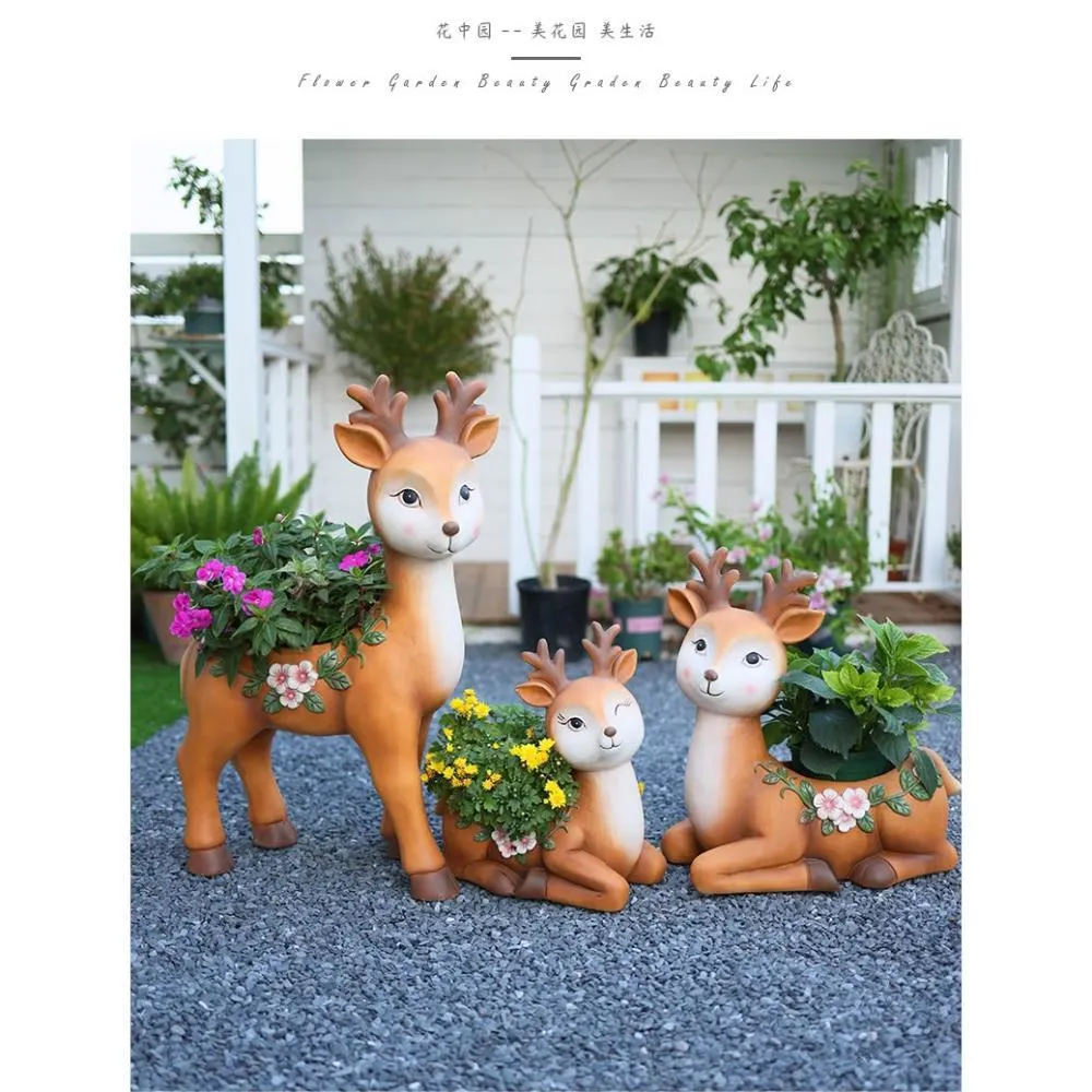梅花鹿戶外庭院裝飾擺件陽臺造景佈置動物院子花園麋鹿創意花盆