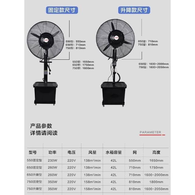 揚子工業噴霧風扇大功率強力戶外降溫水冷霧化加濕除塵商用落地扇