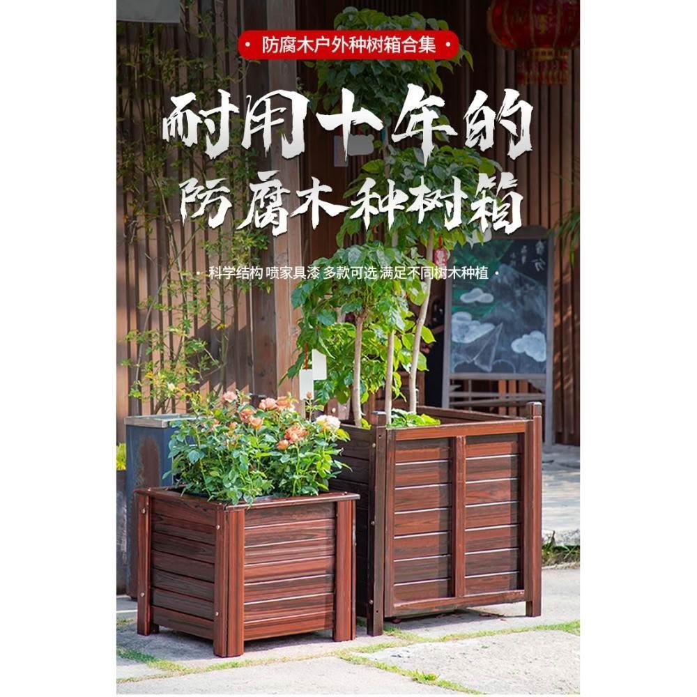 防腐木花箱戶外庭院正方形種植箱超大花盆室外花槽特大號種樹箱盆